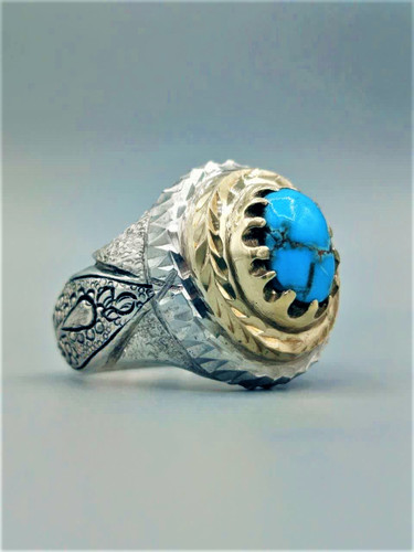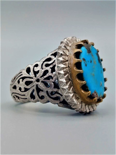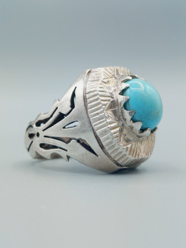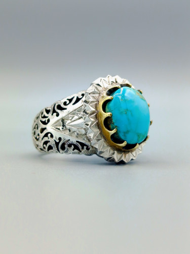 انگشتر فیروزه نیشابور کار دست قلم زنی
