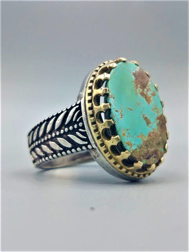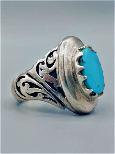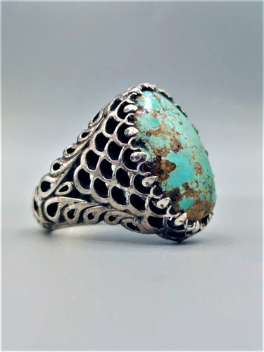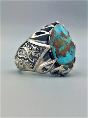 انگشتر فیروزه نیشابور طبیعی رکاب کار دست قلم زنی شده