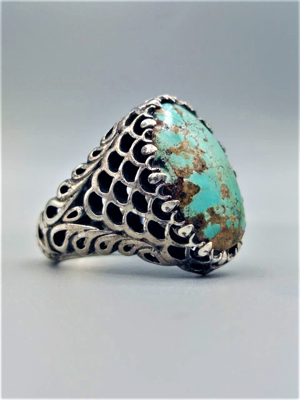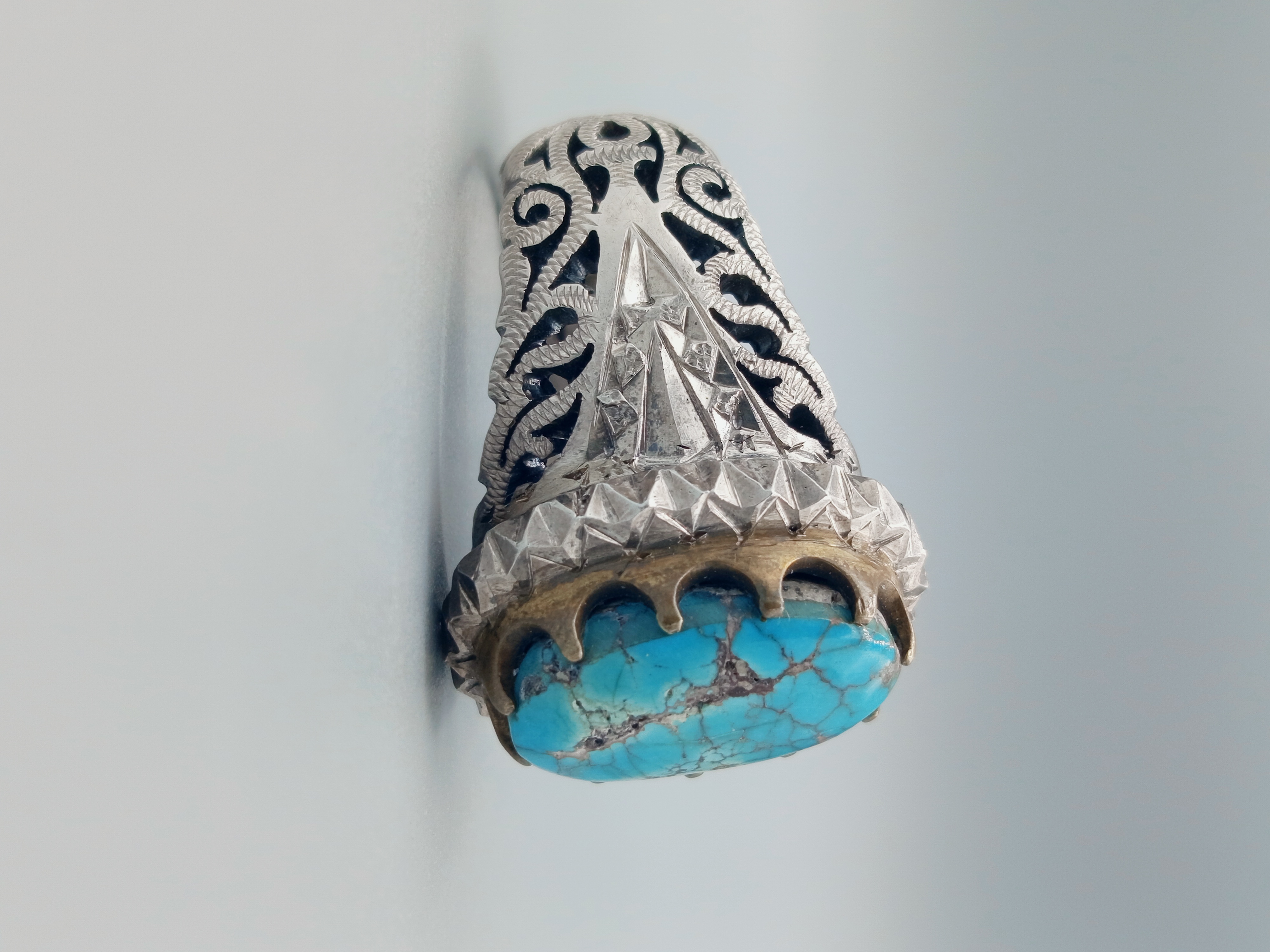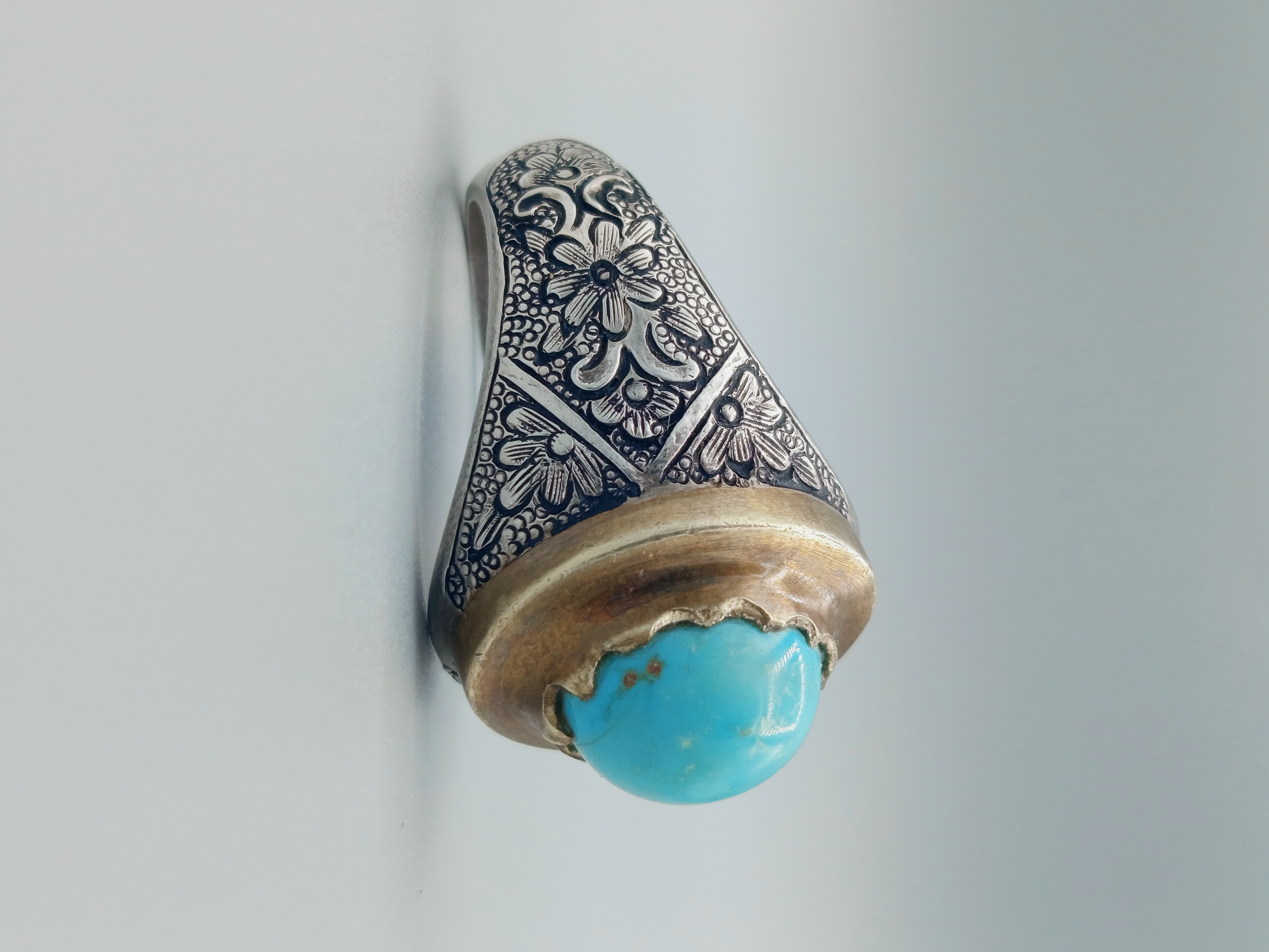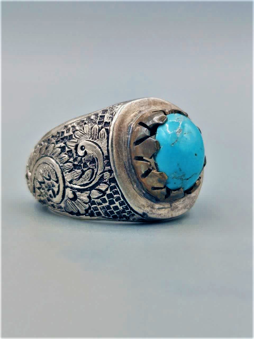 انگشتر فیروزه نیشابور کار دست قلم زنی