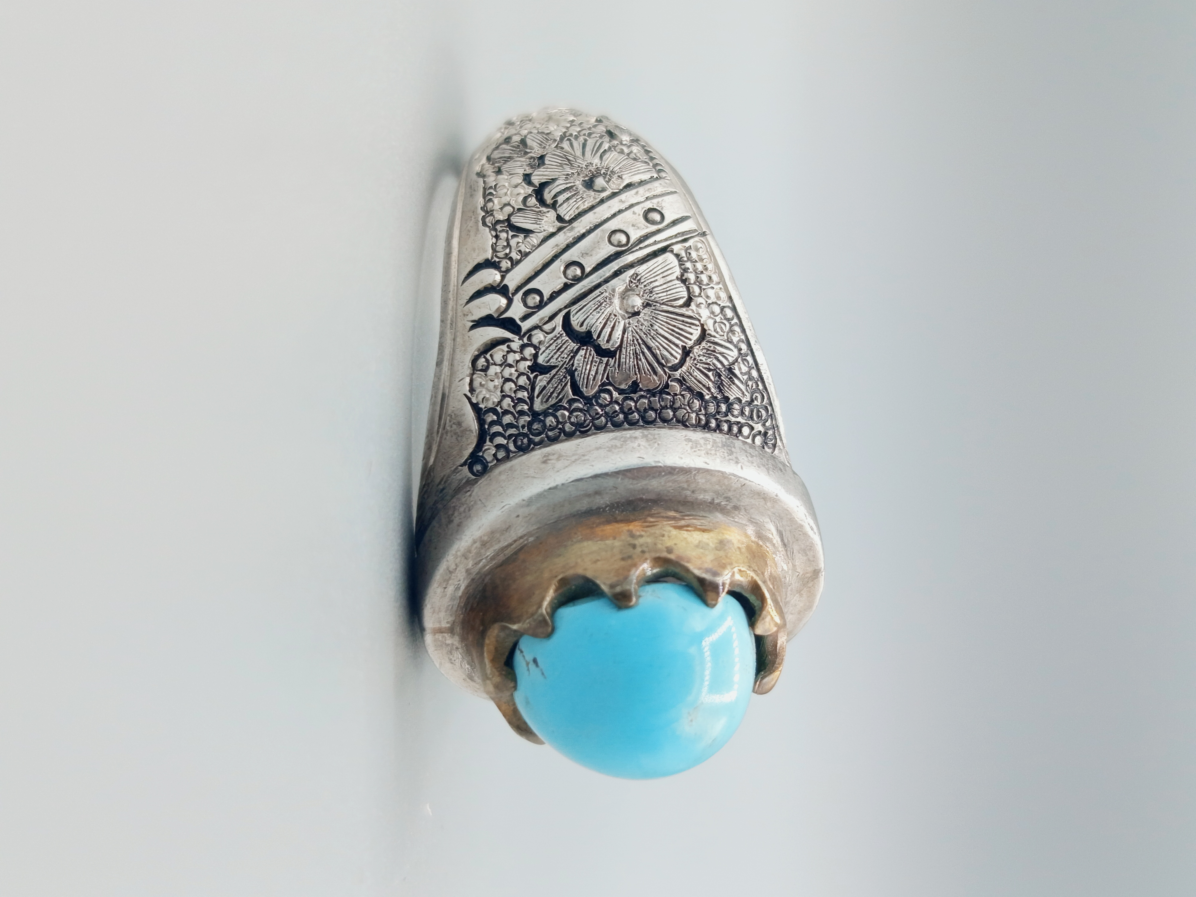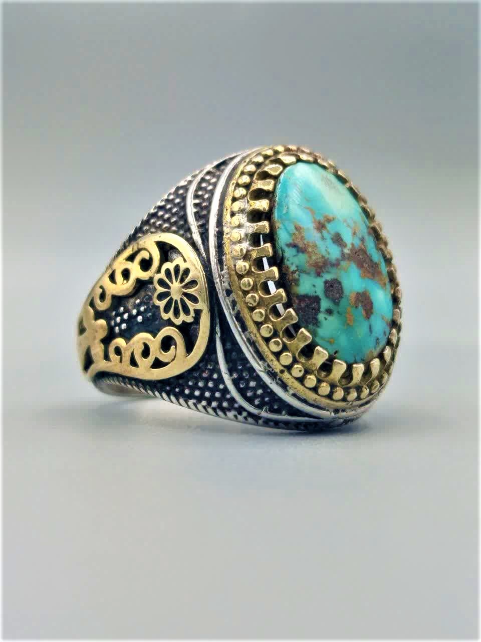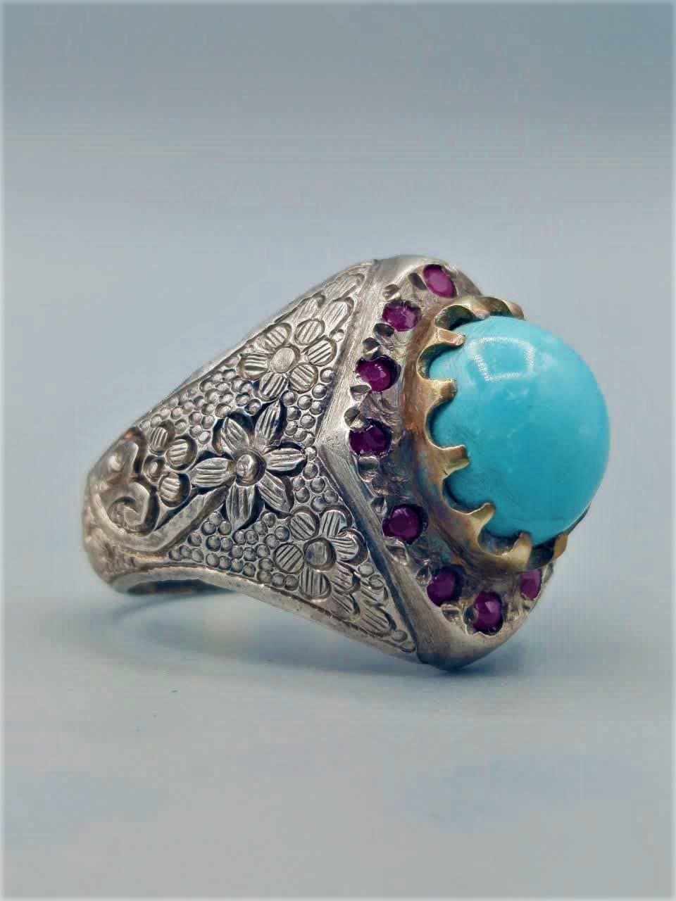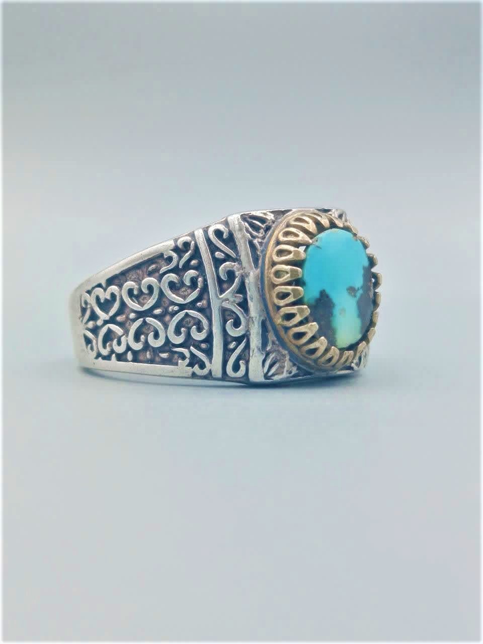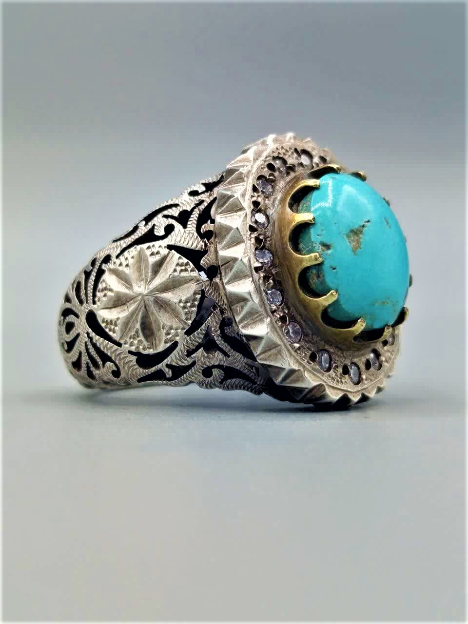 انگشتر فیروزه نیشابور کار دست قلم زنی