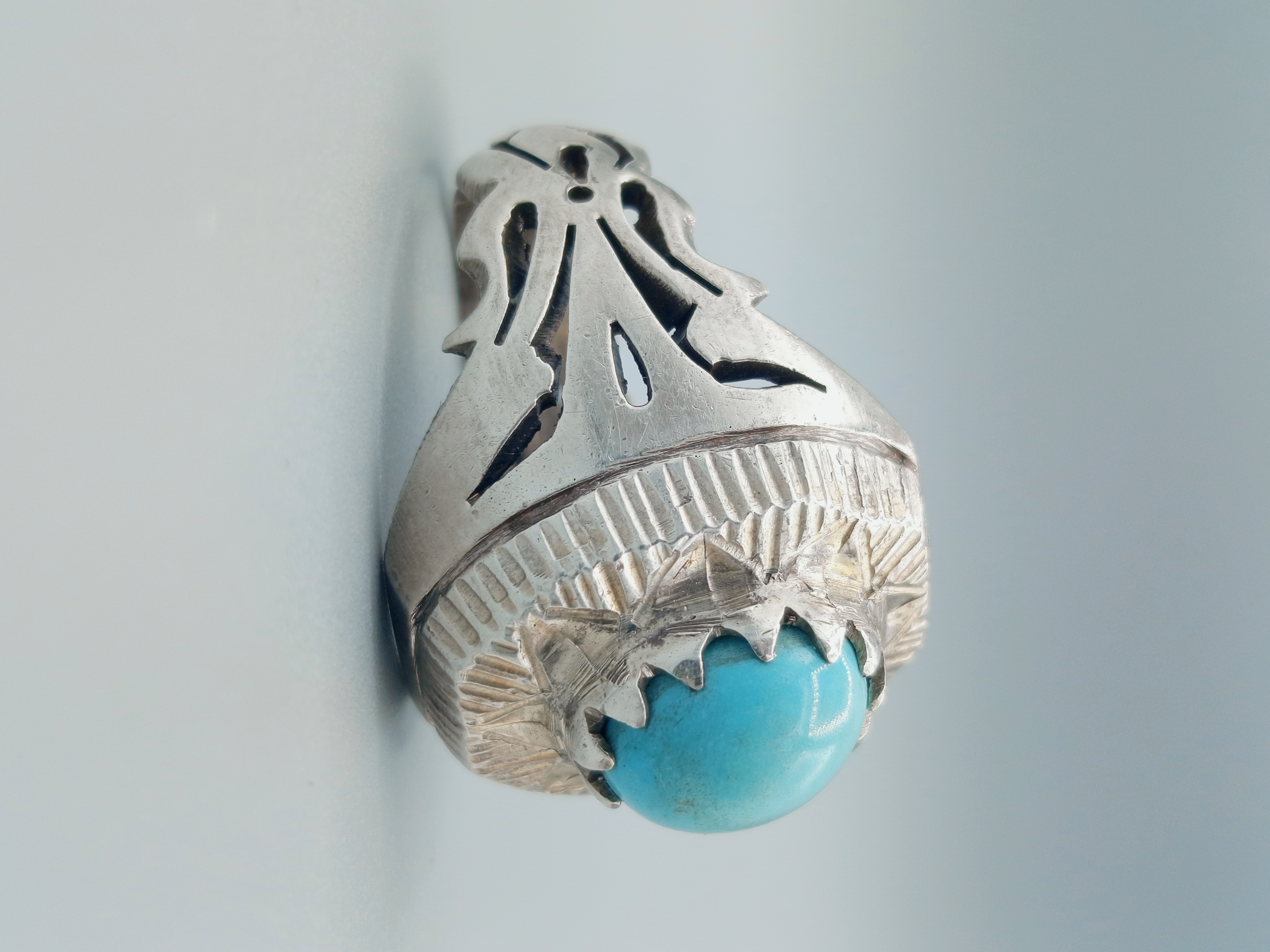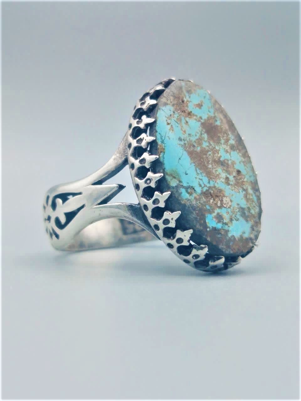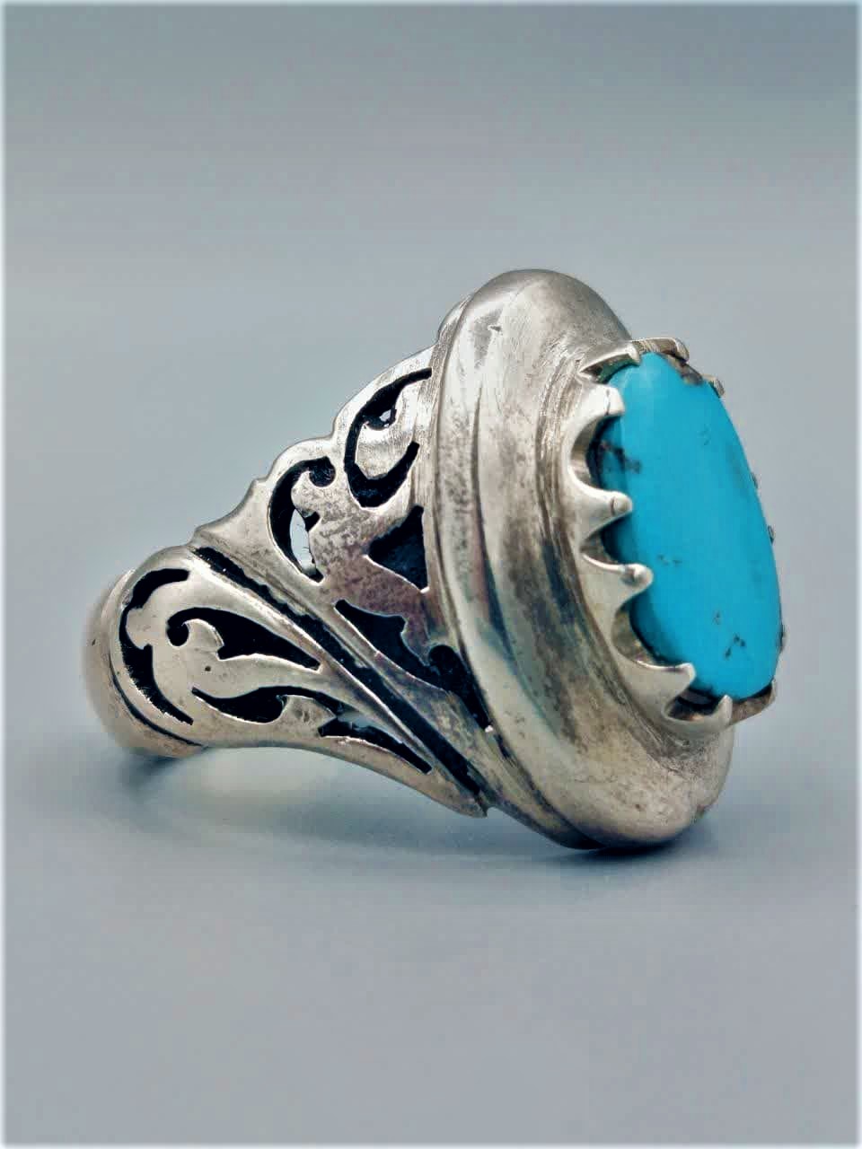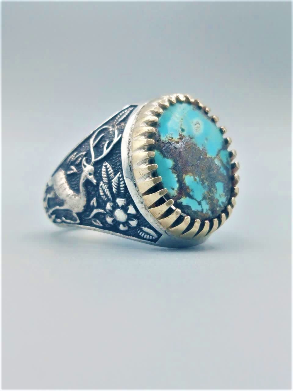 انگشتر فیروزه نیشابور کار دست قلم زنی
