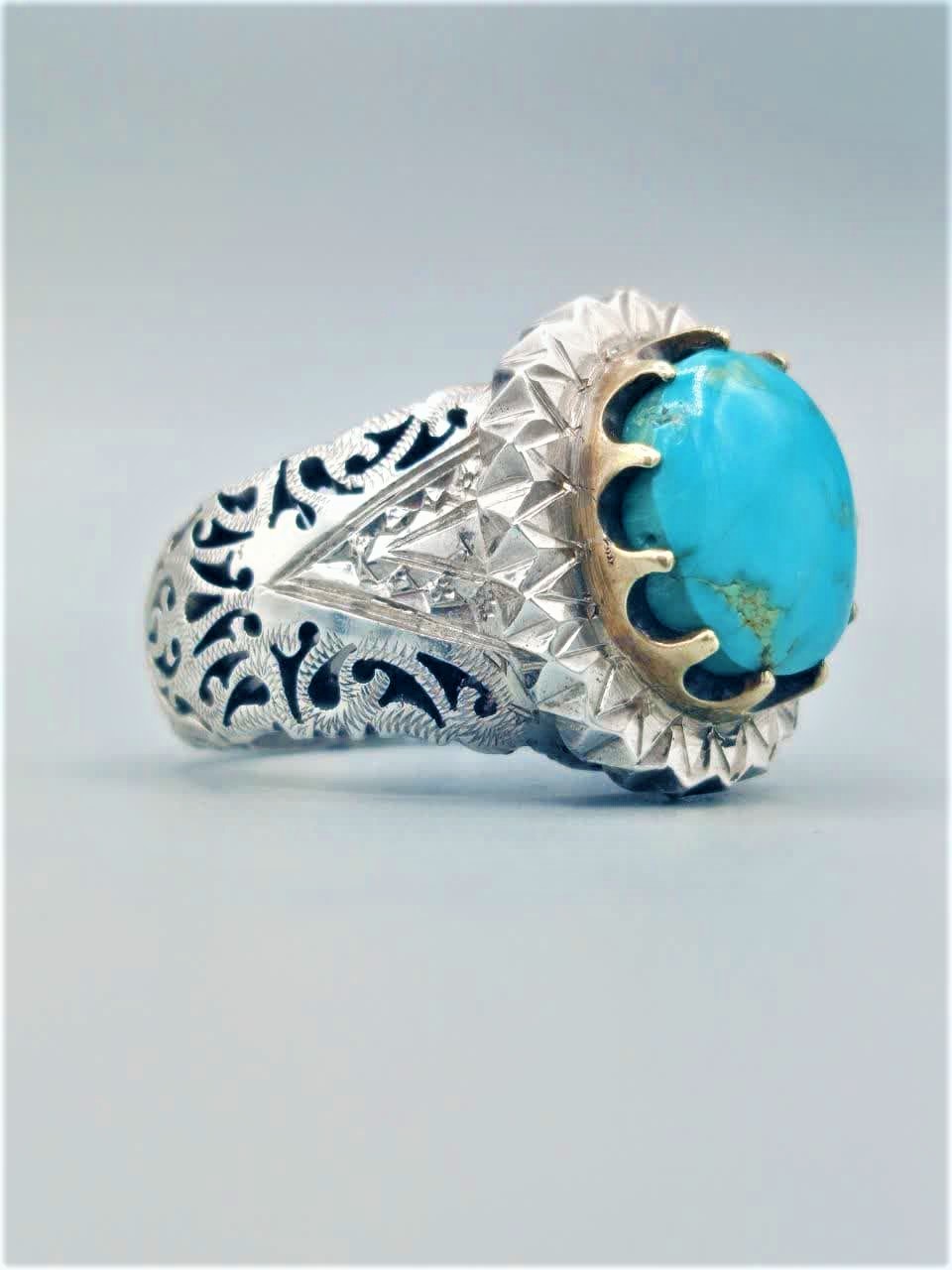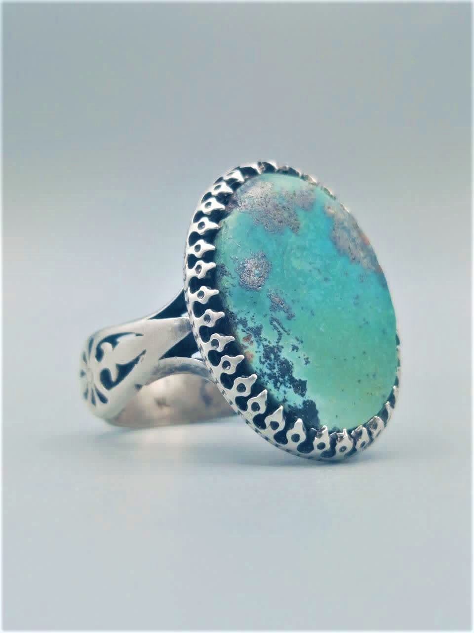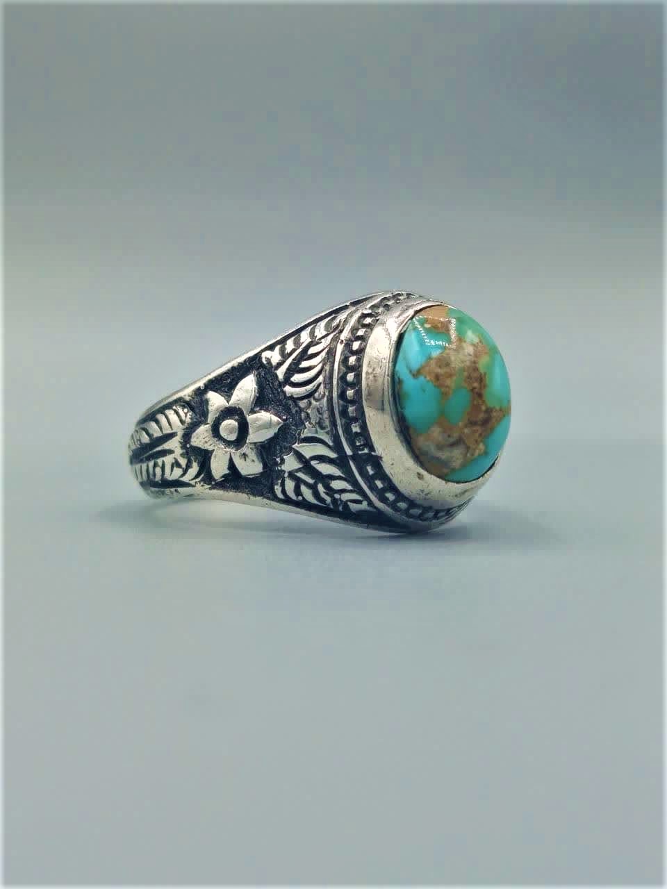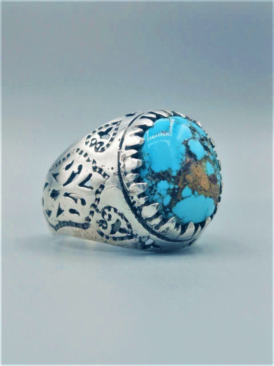انگشتر فیروزه نیشابور طبیعی رکاب کار دست قلم زنی شده