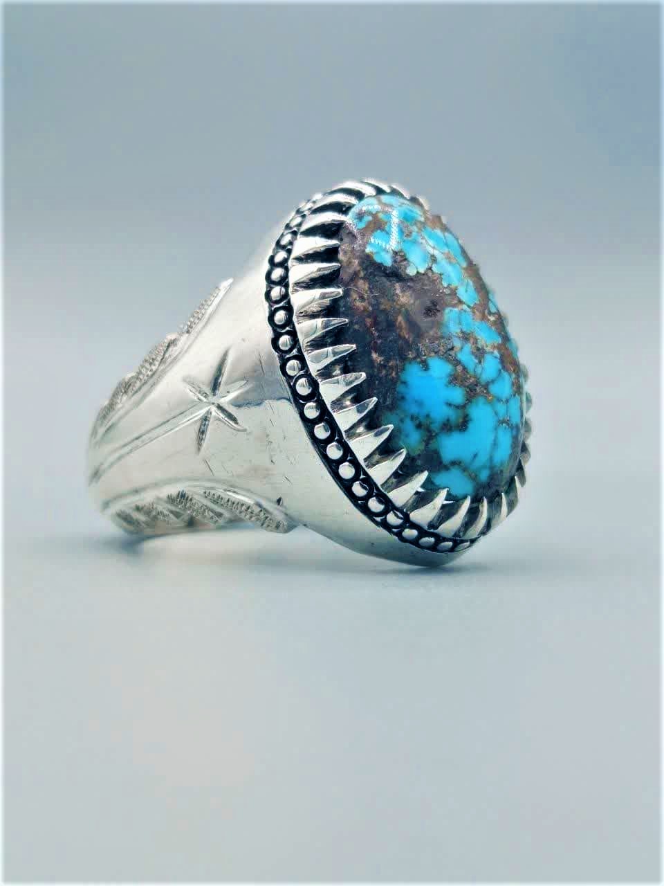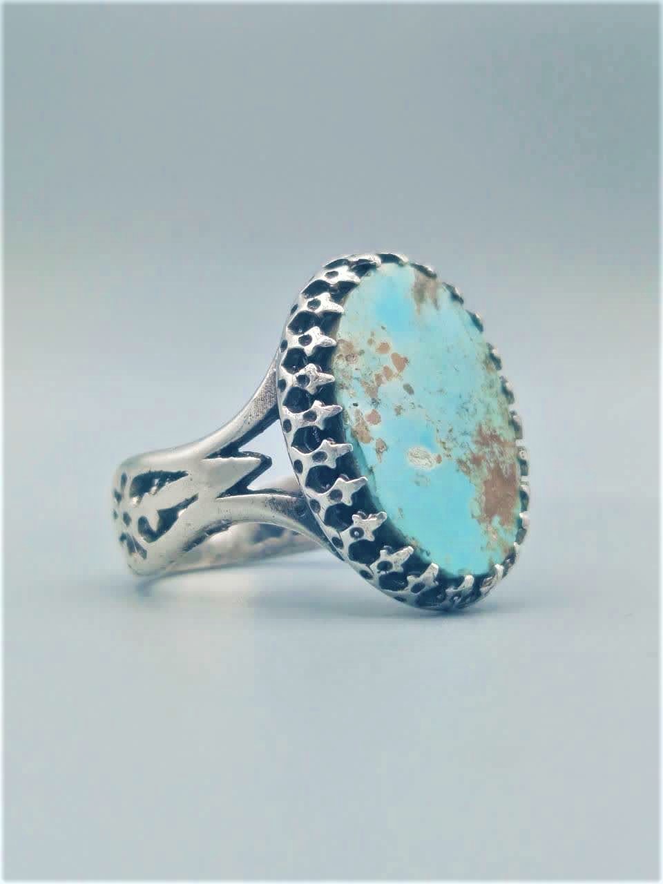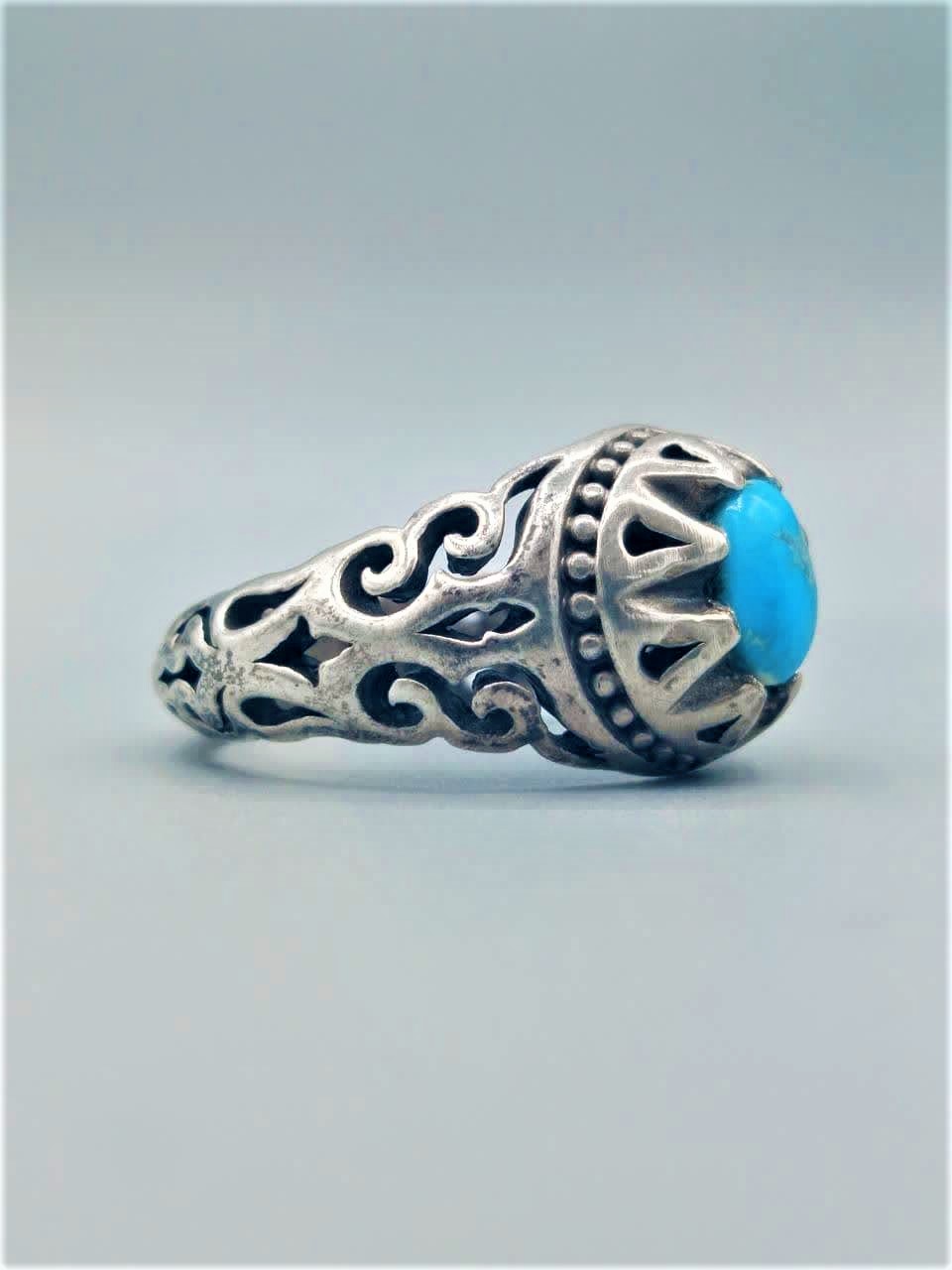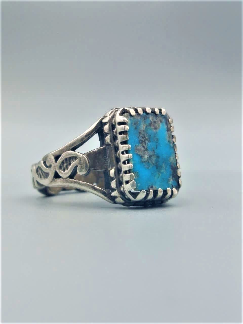 انگشتر فیروزه نیشابور طبیعی رکاب کار دست قلم زنی شده