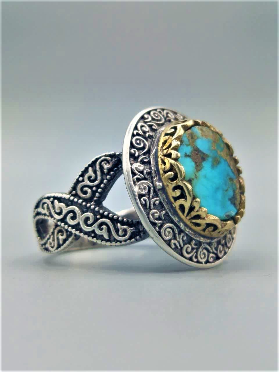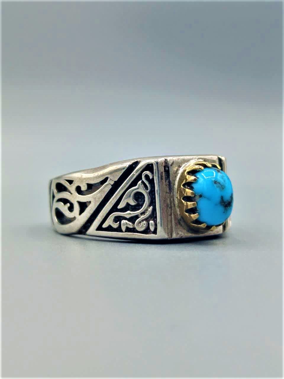 انگشتر فیروزه رکاب قلم زنی شده کار دست