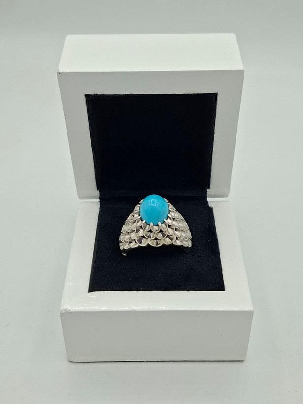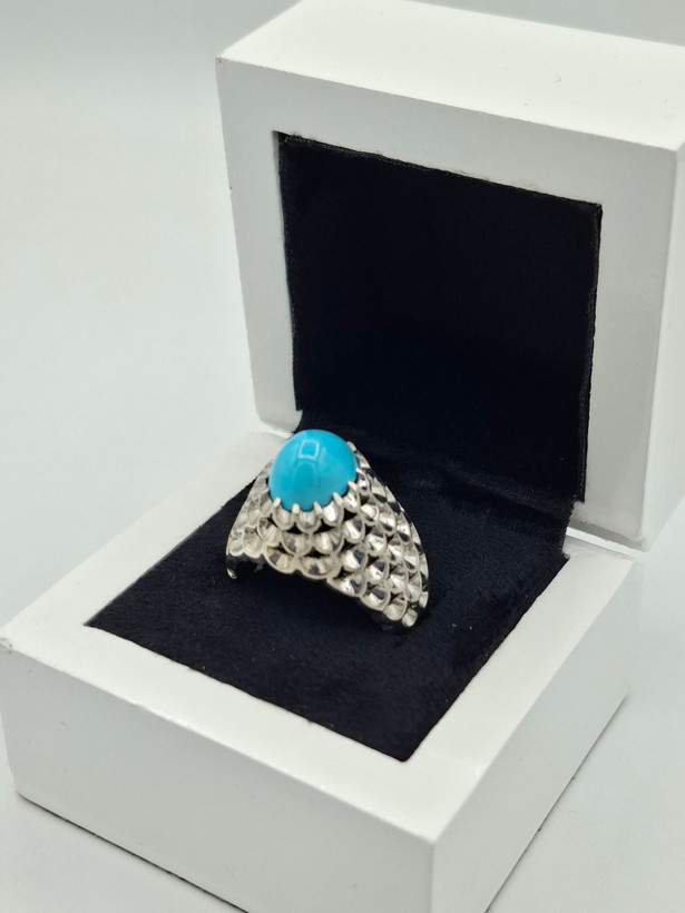 انگشتر فیروزه مردانه صاف خوشرنگ طبیعی